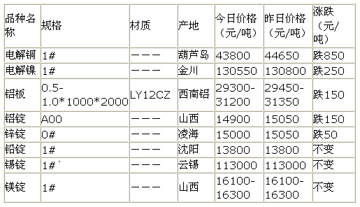 7月17日天津有色金属市场行情(铜镍铅锌锡镁铝)