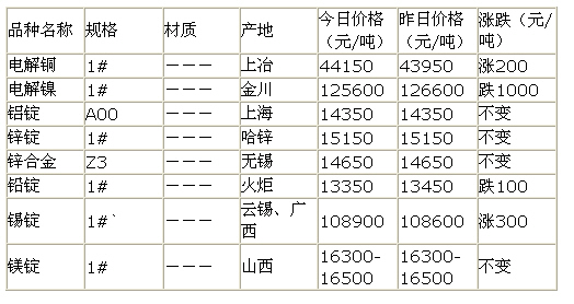 7月22日无锡金属有色市场行情(铜镍铅锌锡镁铝)
