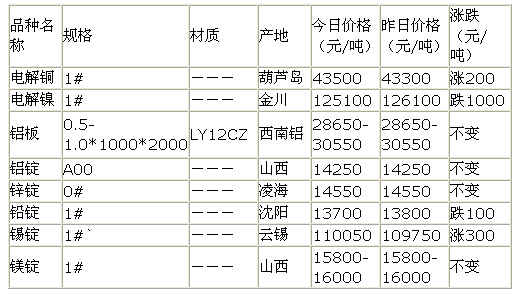 7月22日北京有色金属市场行情(铜镍铅锌锡镁铝)