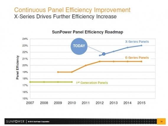 据全球电池网了解,在SunPower的分析师日,该公司稍稍提及其技术路线,强调“X-系列”组件平台将从今天21.5%的转换效率,到2015年提高到23%。